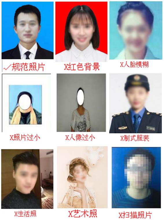 2.照片要求人像清晰,轮廓分明,层次丰富,神态自然。不得进行任何修饰,成像区要求头部占比整个照片3/5以上。